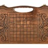 У доски вырезана ручка, которая значительно облегчает переноска и смотрится гармонично. Для защиты от грязи и механических повреждений при транспортировке можно использовать чехол из толстой ткани. В комплекте есть фишки и игральные камни - можно приступить к игре сразу после покупки. Все это складывается внутрь доски, створки закрываются на крючки, доска упаковывается в чехол и так может храниться очень долгое время.