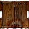 Для производства самой доски используется прочная древесина бука. Она отличается особенной структурой, которая позволяет амортизировать небольшие удары. Кроме того, этот сорт дерева успешно сопротивляется влиянию влажности - не рассыхается и не покрывается трещинами. Для улучшения качеств, сверху наносится несколько слоев темного лака, который дополнительно придает блеска, и делает внешний вид более премиальным. Петли и крючки изготовлены из мягкой бронзы, способной выдержать многочисленные циклы открытия и надежно удерживать створки между собой.