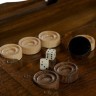 С доской сразу же идет полный комплект, состоящий из 32 фишек и 2 игральных кубиков. К тому же, производитель позаботился о хранении и транспортировке, поэтому добавил мягкий тканевый чехол, который будет защищать от пыли и грязи.