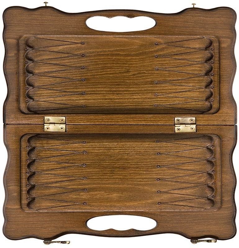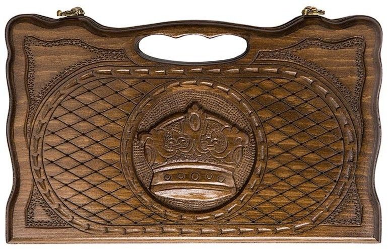 Отдельного внимания заслуживает красивая резка, выполненная на внешней стороне доски - богатая корона, украшенная по бокам орнаментом. Смотрится это очень эффектно и Нарды резные Корона можно рекомендовать в качестве подарка любому человеку. Если этот вариант кажется вам маленьким, то посмотрите на средний или большой, и выбирайте наиболее подходящий.