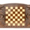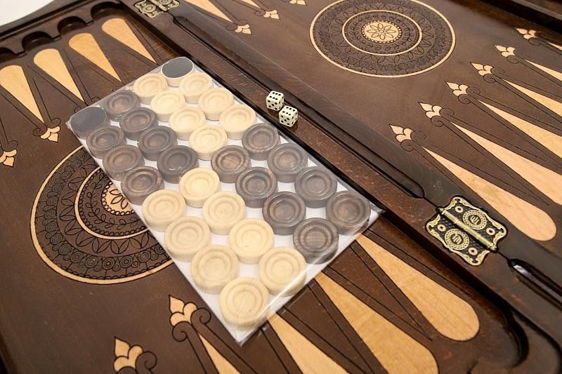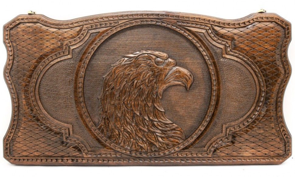 • Что в коробке? Игральная доска; чехол; 2 шестигранных кубика; 32 фишки двух цветов. Резной подарочный набор нард «Орел», сделанный из настоящей буковой древесины – достойное пополнение домашней коллекции классических настольных игр или подарок близкому человеку. Сделанная знаменитым армянским мастером, доска отличается не только высоким качеством, но и потрясающим внешним видом, тщательной детализированностью и проработанностью каждого элемента. Крышка на внешней стороне украшена резным рисунком орла и витиеватым абстрактным узором. Оборотная внешняя сторона – поле для шашек. Внутренняя сторона доски, представляющая собой поле для нард, тоже украшена узорами. Части доски соединены крепкими петлями из настоящей меди. Удобный и практичный чехол позволяет хранить набор в безопасности и легко брать его с собой при необходимости.